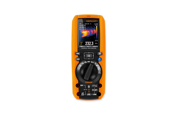 The MERCURY is a single device that combines the functionality normally performed by multimeters and IR cameras. The built-in IR camera can quickly detect hot spots caused by electrical problems or mafunctions and ensure problems are resolved. In addition with Bluetooth connectivity, the instrument can be set to measure while the user moves away from possibly dangerous areas. The MERCURY is portable, compact and has an IP65 rating. |